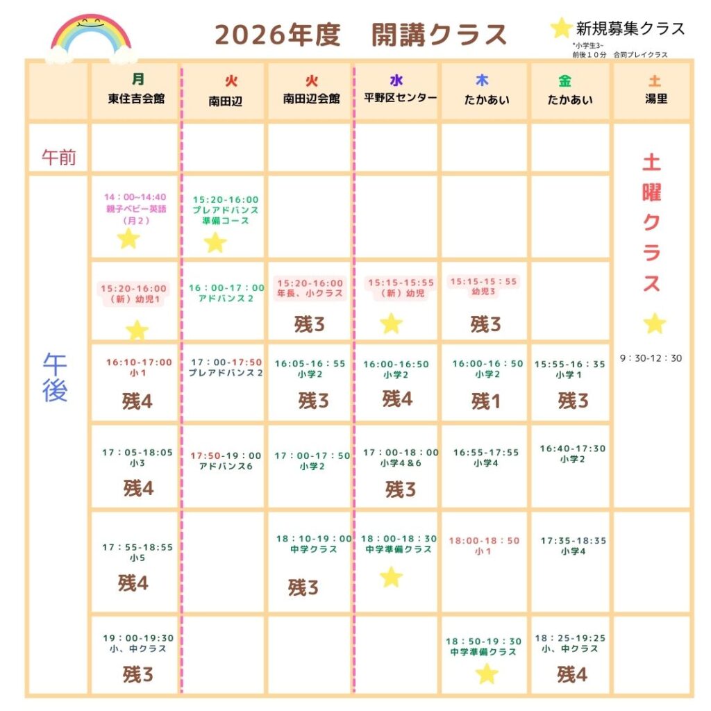 | 南田辺 | 火 | ※16:00~17:00 (アドバンス2) ※17:10~18:00 (プレアドバンス2) ※18:00~19:00 (アドバンス5) | 2~8人 |